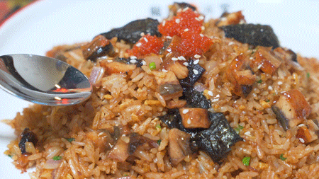 炒饭莫过于蟹籽鳗鱼炒饭,可别小看了这个鳗鱼炒饭哦,受到了许多周围食客的好评,表面铺满的粒粒鳗鱼鲜香软滑,米饭粒粒Q弹,拍照的时候已经被馋得不要不要的了。
