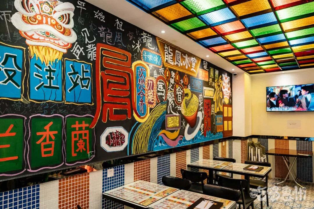 龍鳳冰室正是很好的还原的那个年代的香港场景,怀旧的海报、复古的老式旧瓷砖,连电视机里播放的都是那个年代的经典电影,让人有种穿越到了70、80年代的香港。