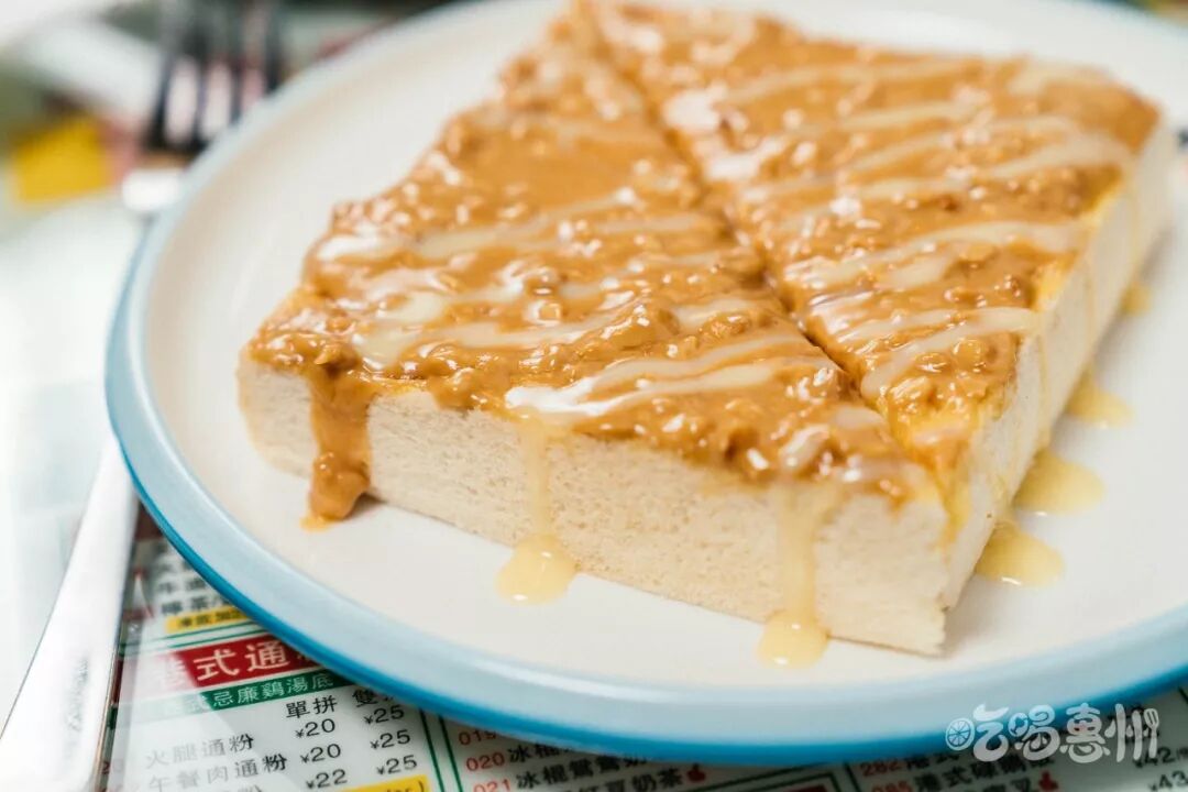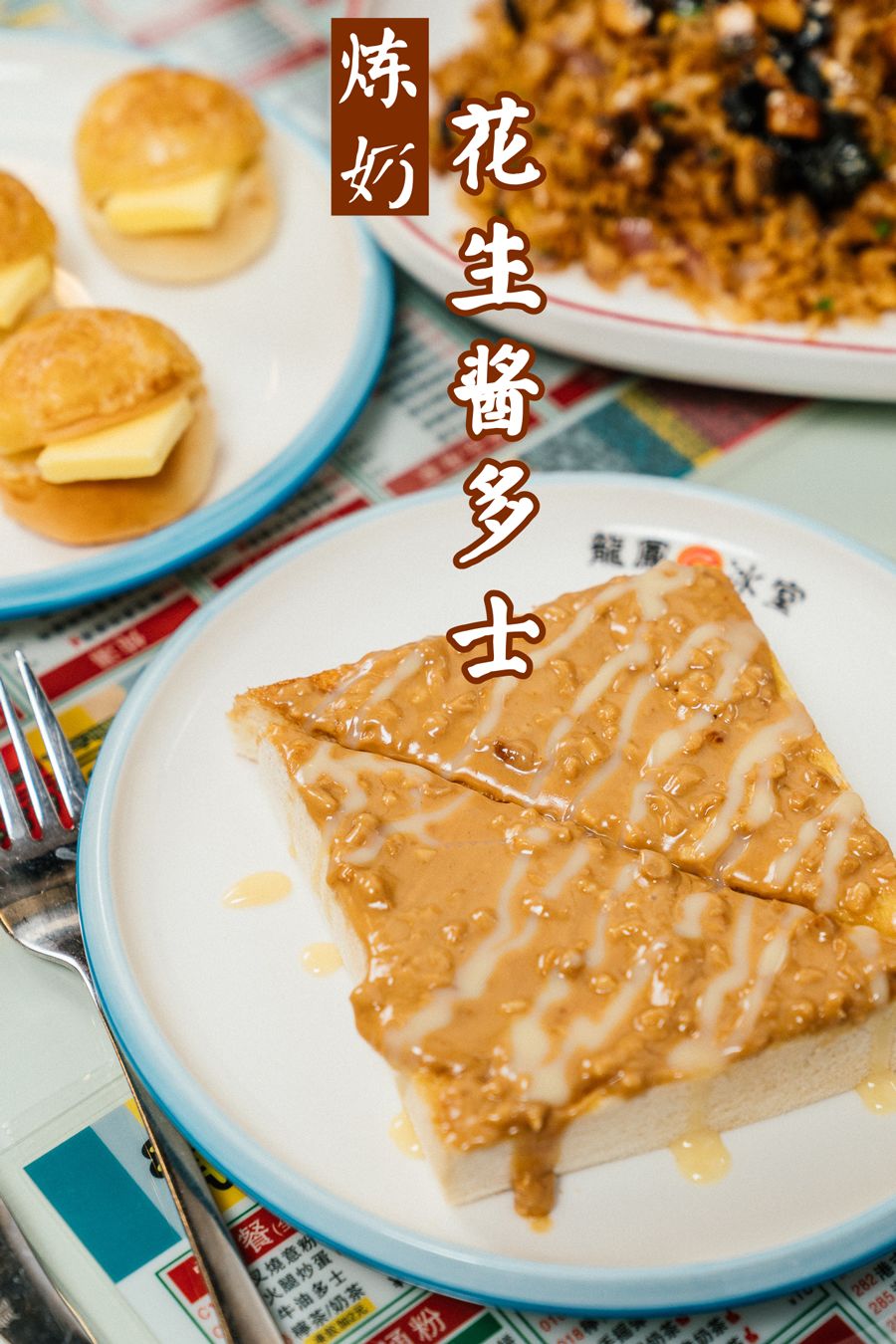 喜欢这个炼奶花生酱多士,上桌就被它吸引,方包上涂满一层厚厚的花生酱和炼奶,你还能看到花生碎哦。