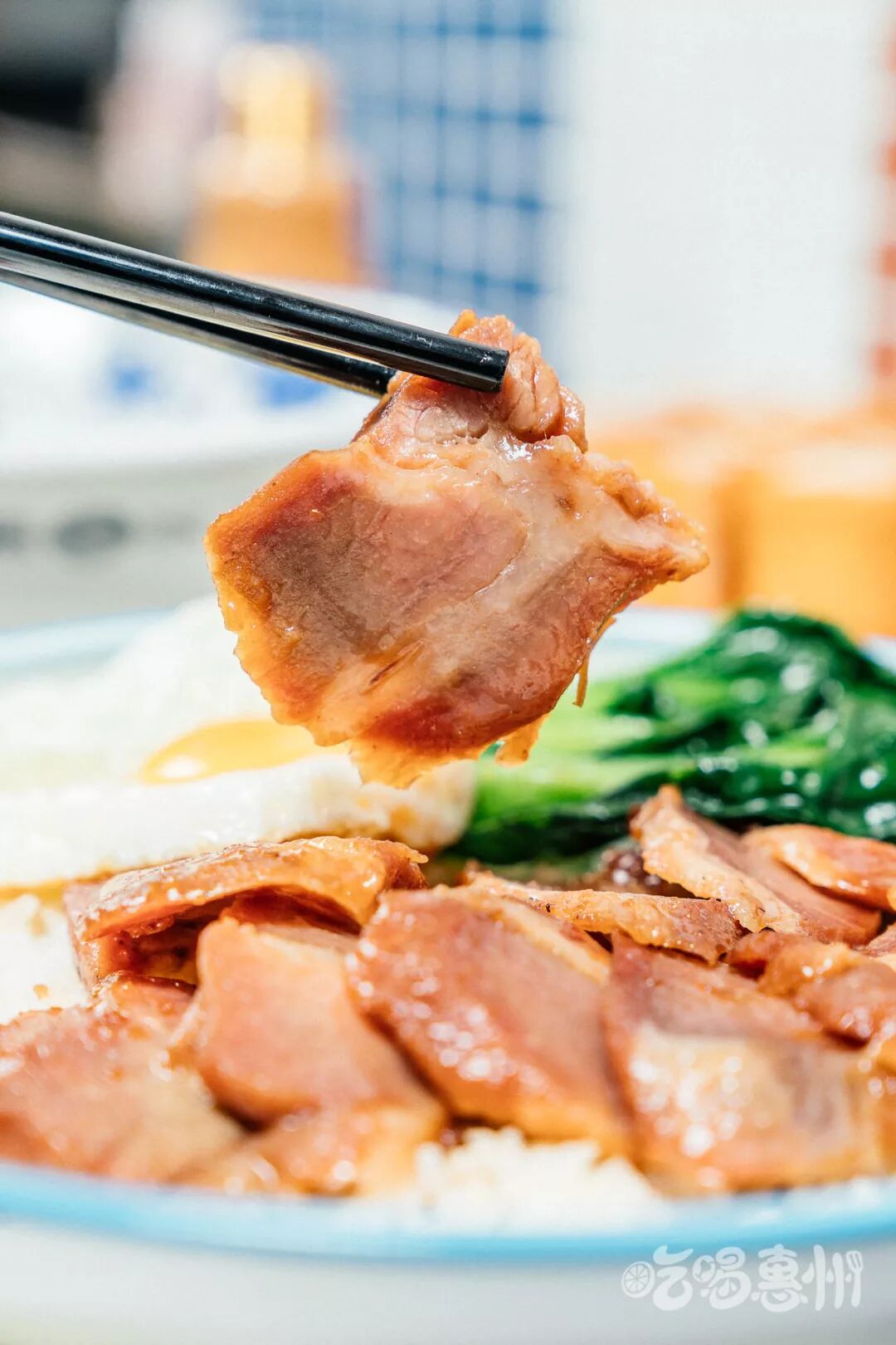厚切肥瘦相间的叉烧铺满了表面,分量十分足,还会配上溏心蛋和菜心,饭下面还会淋上秘制叉烧汁,这样的搭配让人看了就食欲大增呢。
