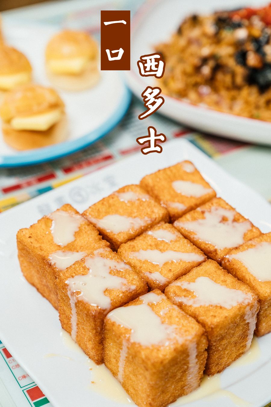 在冰室不叹一份一口西多士就算白来了,毕竟一口西多士是港式美食里超超超经典的一款,特制的方包裹上鸡蛋液和蛋奶,在油锅炸至金黄,外香里嫩的西多士就算大功告成。