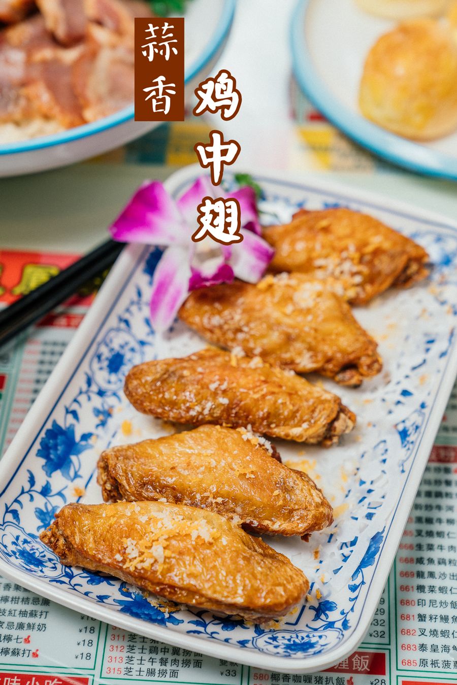 蒜香鸡中翅,它与很多地方的鸡中翅不同,它的表皮是十分酥脆的,而内里的鸡肉咬下还会流出汁水,让你吃起来直呼过瘾。