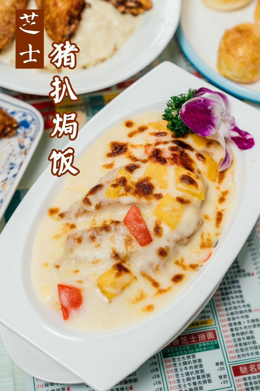 芝士控必点的芝士猪扒焗饭,都说芝士就是力量,表面满满的一层芝士趁热还能拉丝哦!下面的饭是炒饭,这样的搭配吃起来既有芝士的香浓也有炒饭的余香。