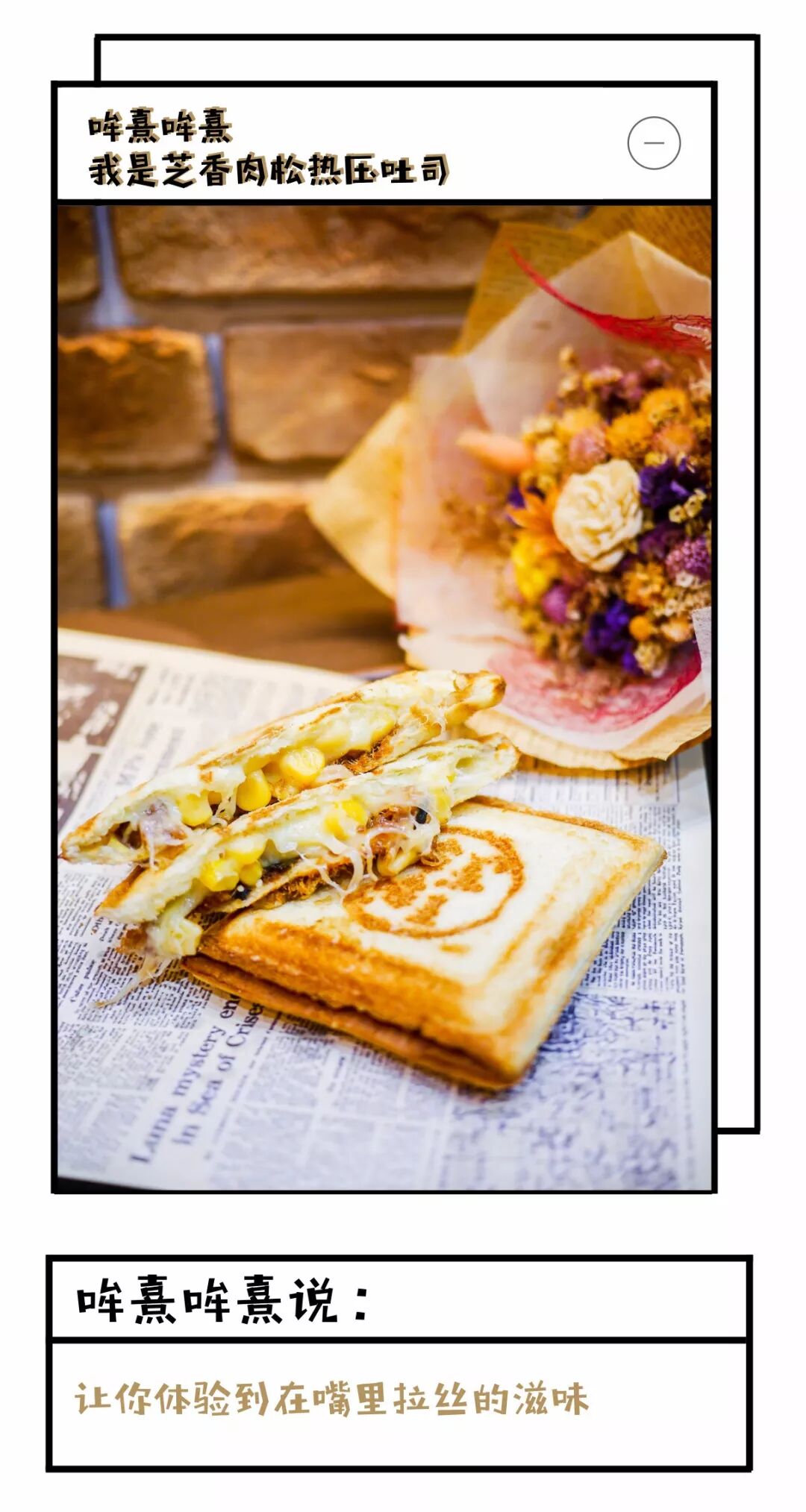 最近小红书的爆款热压吐司在惠州也能吃到啦!「哞熹哞熹」新上线的吐司系列让这个冬季多了一份美好的选择。芝香肉松热压吐司让我最感兴趣的就是芝士与肉松混杂在一起的感觉了。