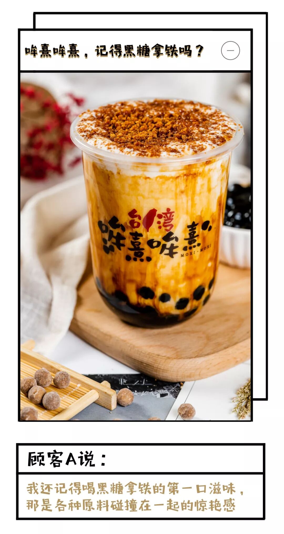 这款人气王还有另一处特别的地方就是洒在最上层的黑糖颗粒了,不会甜得腻人,带着特别的清甜气息,口感也很特别。