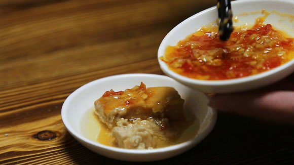 作为一个广东人,吃羊肉,雄鸡牌的腐乳必须有姓名!这里建议加点店里的特制辣椒,吃得更“火辣”