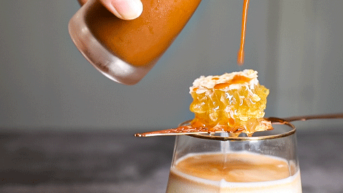 将锡兰红茶从蜂巢中轻轻倒入,在这个过程里蜂蜜也会随之渗透进去,慢慢从蜂巢中滴落出来的蜂蜜就这样在奶茶中化开。有颜值还有“实力”的奶茶,喵呜的蜂巢奶茶你值得一试!