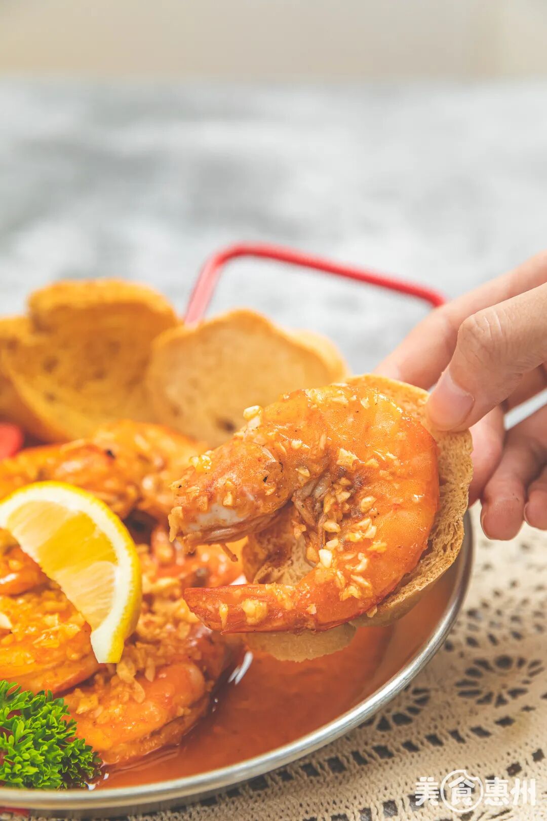 作为店内的主打新品,老板特意选用了橄榄油作为基底,再将黄油融化炒香蒜蓉,和手掌大小一般的鲜虾锅中爆香,淡淡的奶香就这样蔓延开来。