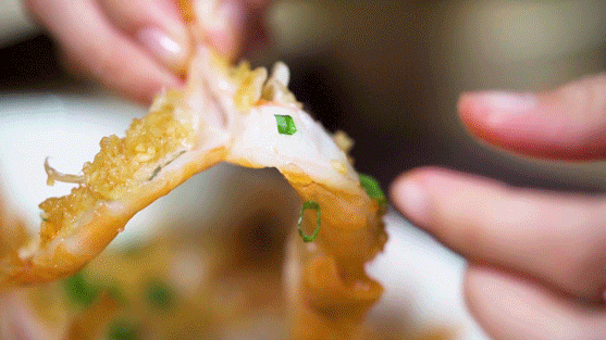 酥脆又甜甜的外壳,让人忍不住嗦着吃,肥美的蟹肉经过炸煮,变得香味四溢。