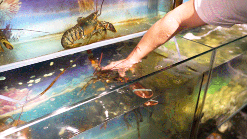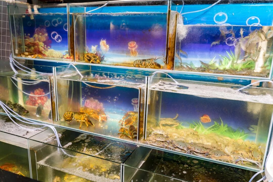 在池里跃跃欲跳的海虾▼ 会换气的扇贝▼ 可以和人打上一架的大龙虾▼…海鲜馆里应有尽有,更有你没有吃过的!