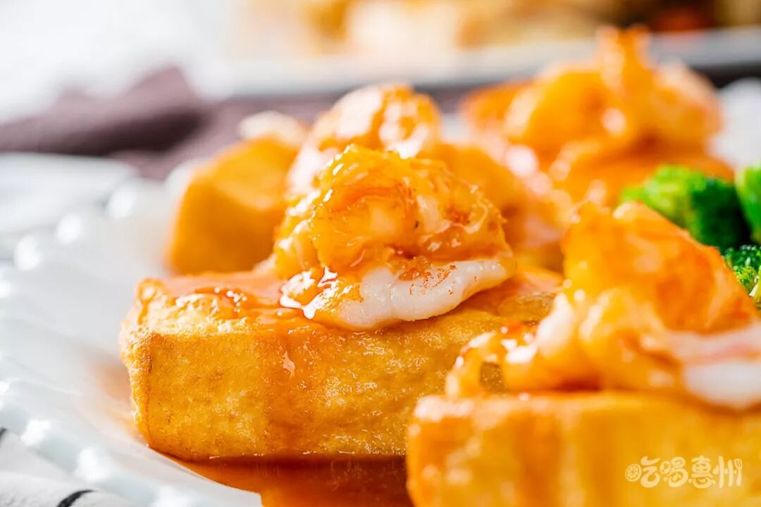 最后师傅会放上一整个Q弹的虾仁,再浇上秘制烹饪的鲍鱼汁,下饭首选!