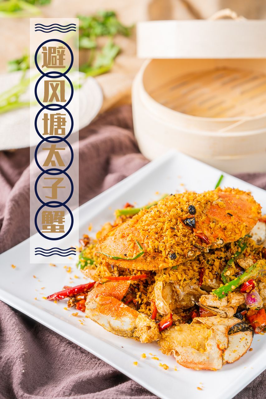 最重要的一步来了,将事先准备好的避风塘食材配上刚好油炸出锅的太子蟹一起大火爆炒即可美味出锅啦!