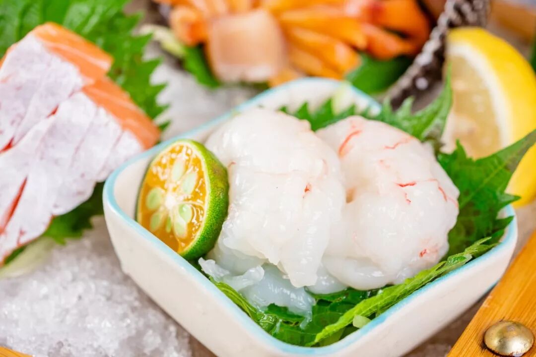 鳌虾、三文鱼、八爪鱼、活赤贝等等,店里的刺身都是每天到货,所以每一块刺身都能尝到肉质的鲜甜。