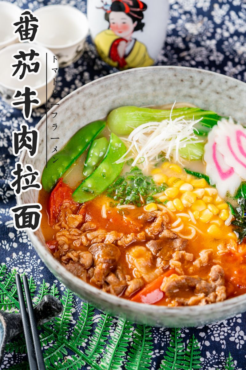 如果还想来一份主食,波妮推荐番茄牛肉拉面,鲜甜的番茄汤底,配上肥牛与鱼板、玉米,光是汤底都忍不住多喝两口。