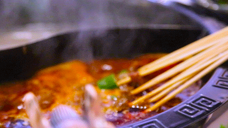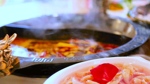 听说为了保证锅底的正宗,这些牛油都是坐过飞机哒,沸腾后的牛油散发出浓浓的香气,周围弥漫着辣味。
