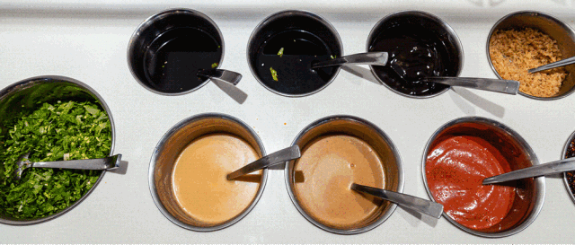 店里的调料可谓是多种多样,不论是你是重口味还是清淡系,都可以根据自己的喜好调出想要的口味。