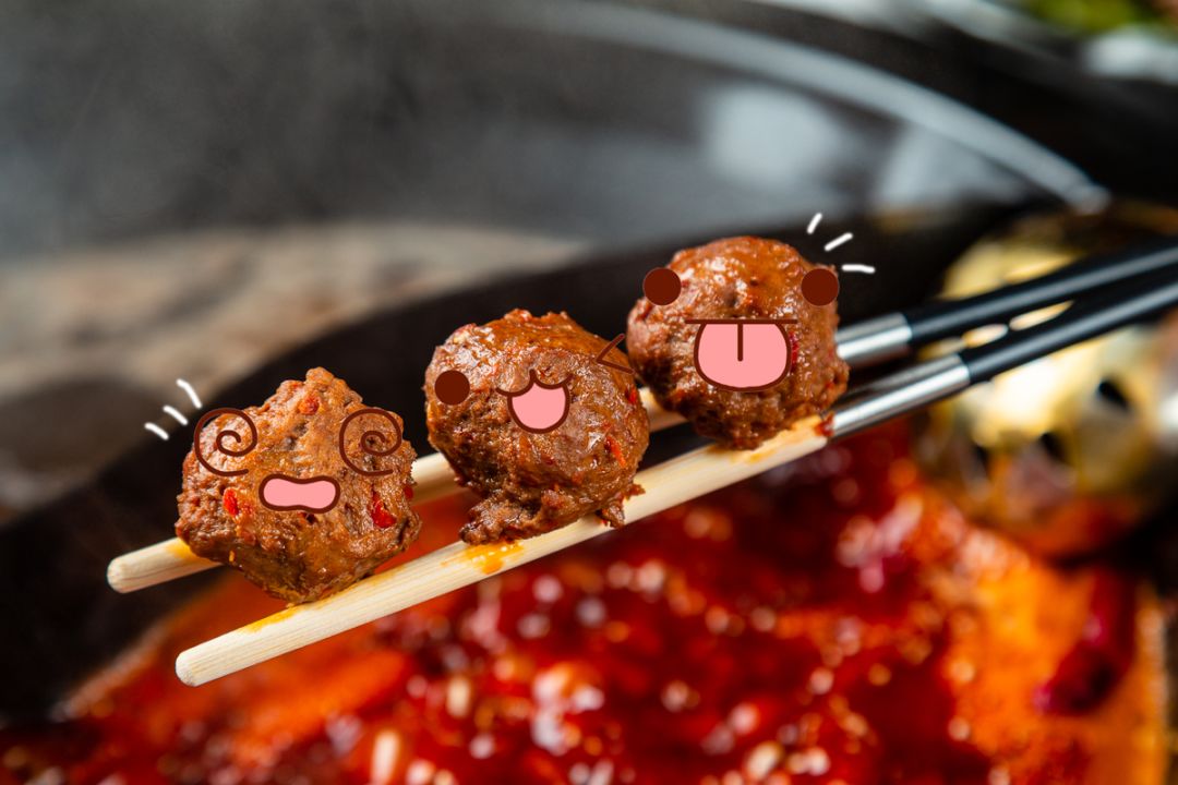 只需下锅煮上5分钟,就可以打来上来啦,放在辣味十足的牛油锅底,牛肉丸充分吸收了汁水,辣味十足,一口咬下还会爆汁哦!