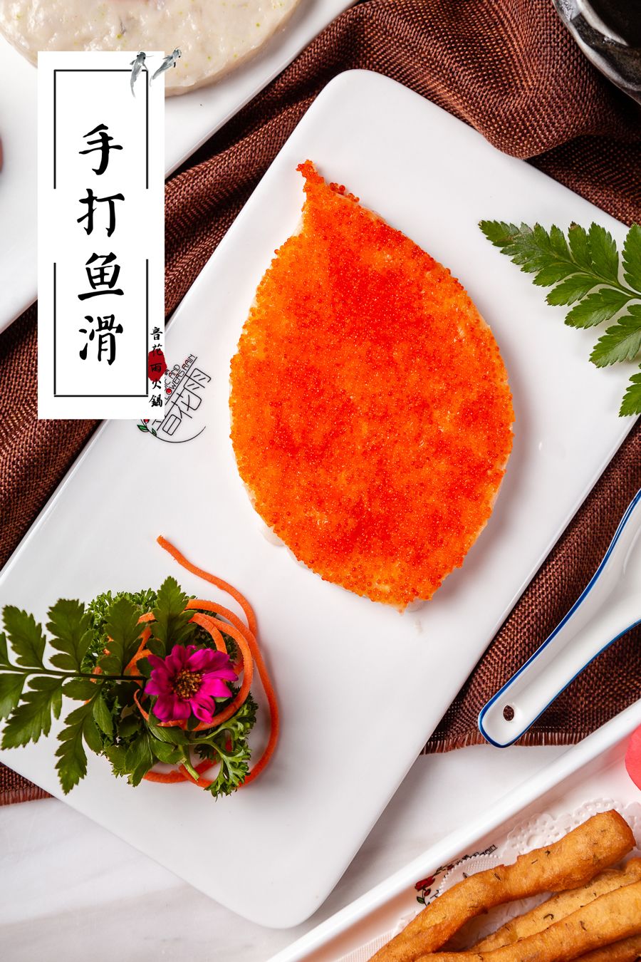 大家在别的火锅店只能看到虾滑,但在这里就不同啦,还有墨鱼滑!墨鱼滑也是纯手工制作,还十分有趣的做了笑脸的形状。