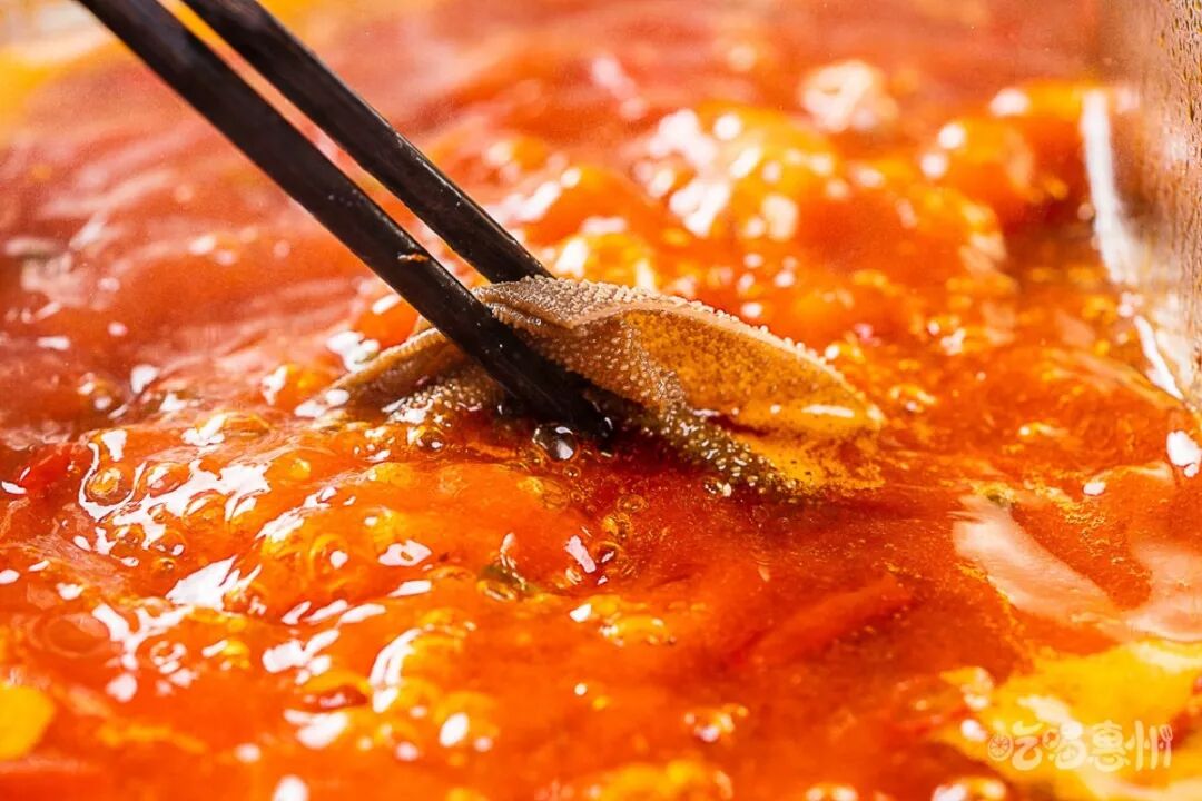 由于鲳鱼鱼肉较为鲜嫩,所以下锅后鱼肉很快熟透,不宜久涮,这样口感不佳。火锅的味道很快滲进鱼肉里,香、鲜、辣三重体验,令人吃过喜出望外。