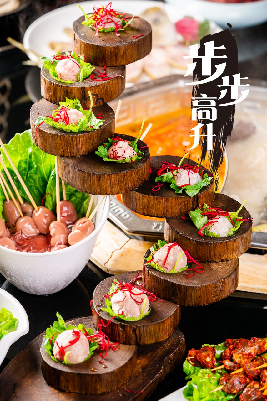 一个个用小树枝支撑起来的丸子杂锦,出场很霸气,还有个好意头的名字:步步高升。