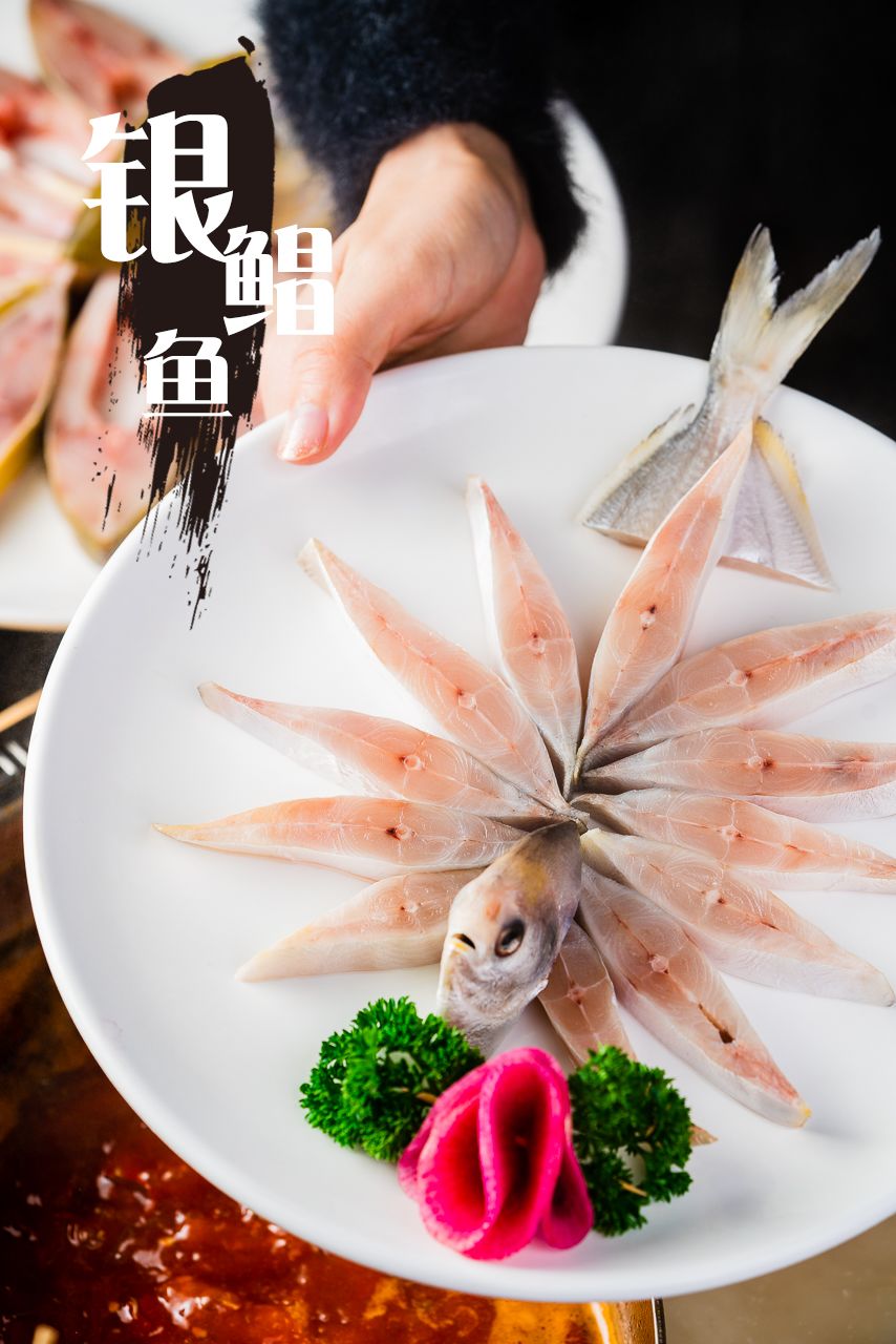 通常鲳鱼大家最常见的吃法是清蒸或者炭烤,放入火锅,是蜀九香推出的全新菜品,也是我第一次尝试吃火锅涮鲳鱼…
