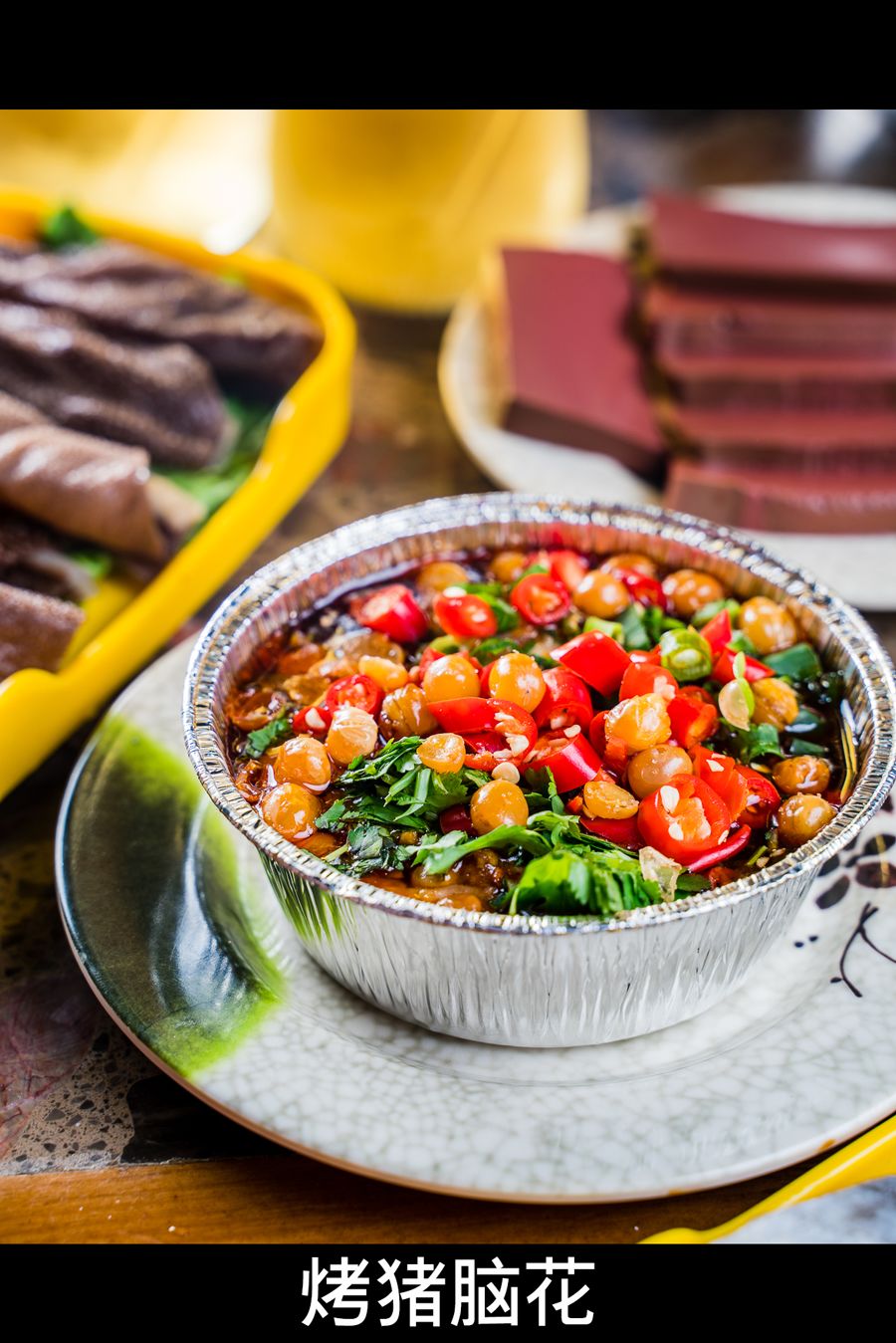 老板实力推荐这款烤猪脑花,猪脑花是店里独家配方炙烤的,嫩滑的猪脑与辣椒相交融,入口即溶,那种细腻幼滑。