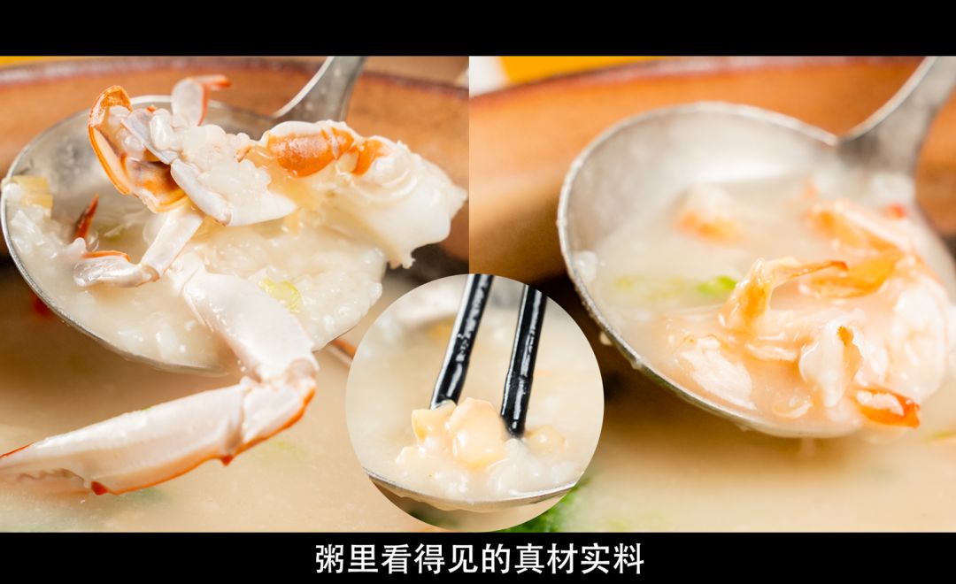 店里最出名的就是这个虾蟹砂锅粥,老板说:我们家的砂锅粥,真材实料,可是人人都夸好的!