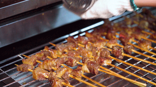 店里的小哥哥都是烤牛高手,熟悉的手法,每次烤个上百串都不成问题,光是看着牛肉在烤炉上“吱吱吱”的冒着泡泡,就已经欲罢不能。