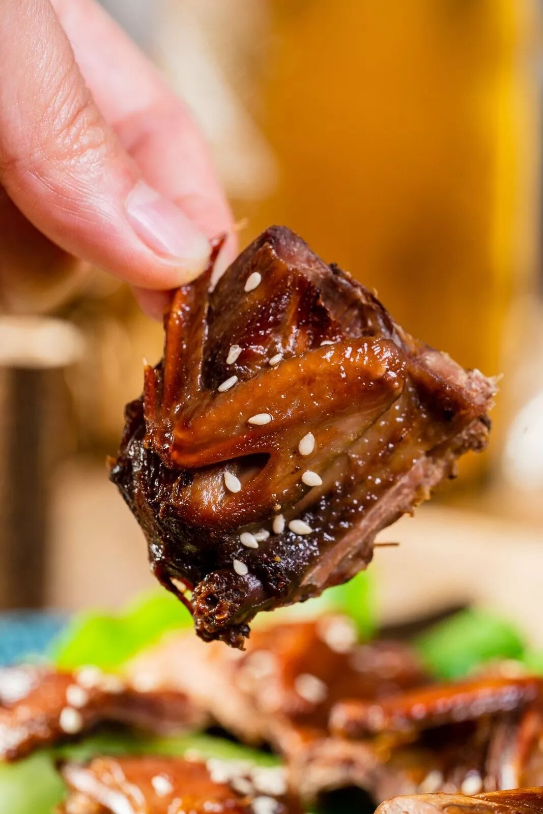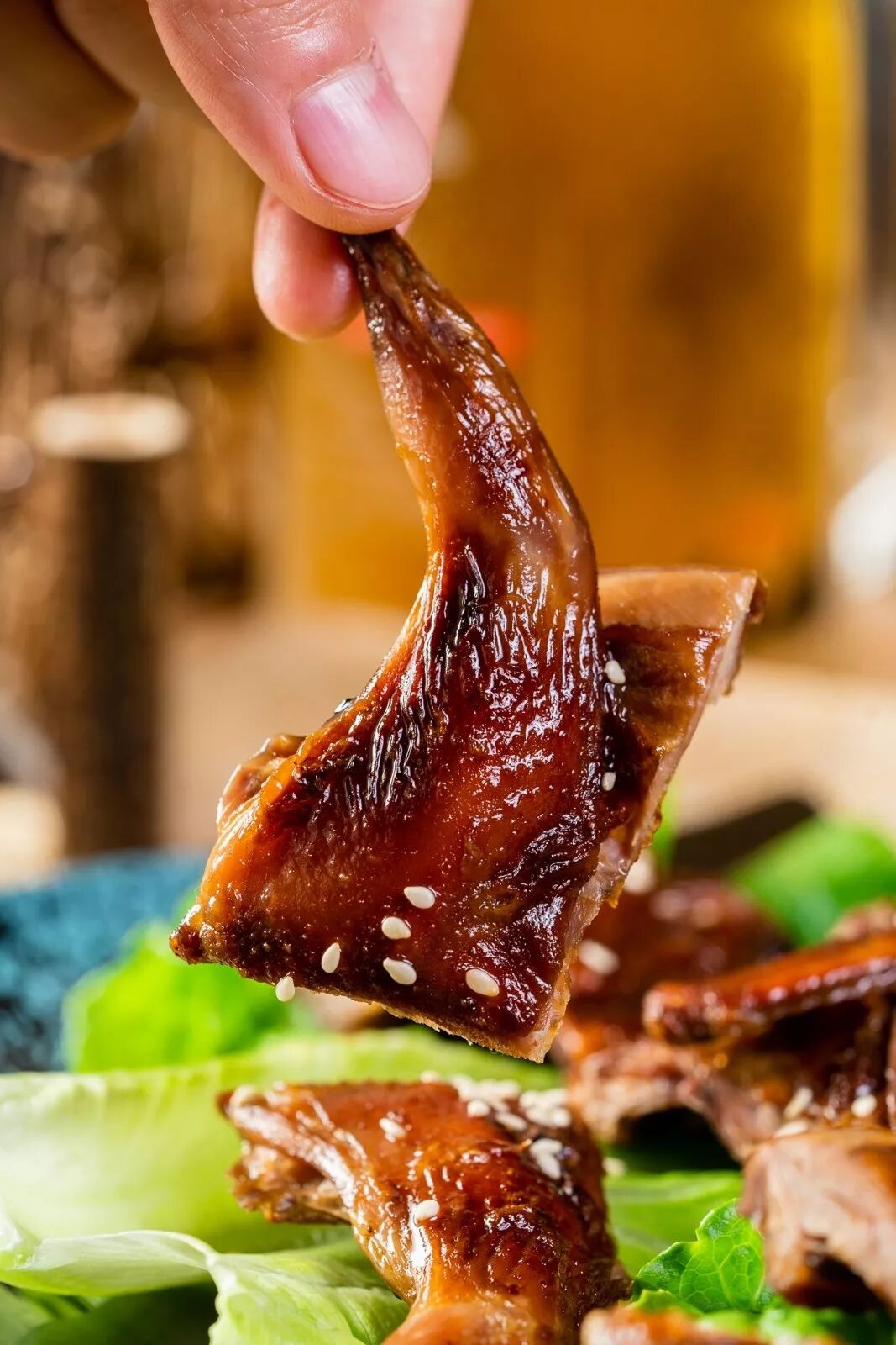 烤好的乳鸽需要趁热吃,表皮酥脆,内里肉质嫩滑,入口还会爆汁,连骨头都是香脆的,十分有味道。
