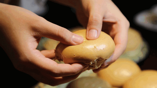 这款包子第一眼看有点不起眼,但却大有乾坤,拿在手里的时候,很松软,淡淡的麦粮气味扑鼻而来。