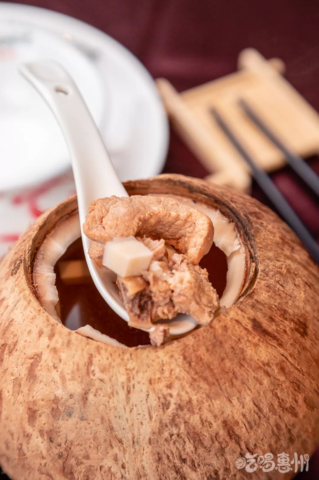 选用100%海南椰皇,椰子的香味在每一口都能体现,和自己果场的土鸡炖制而成,细火慢炖,清新的椰香都融入其中了。
