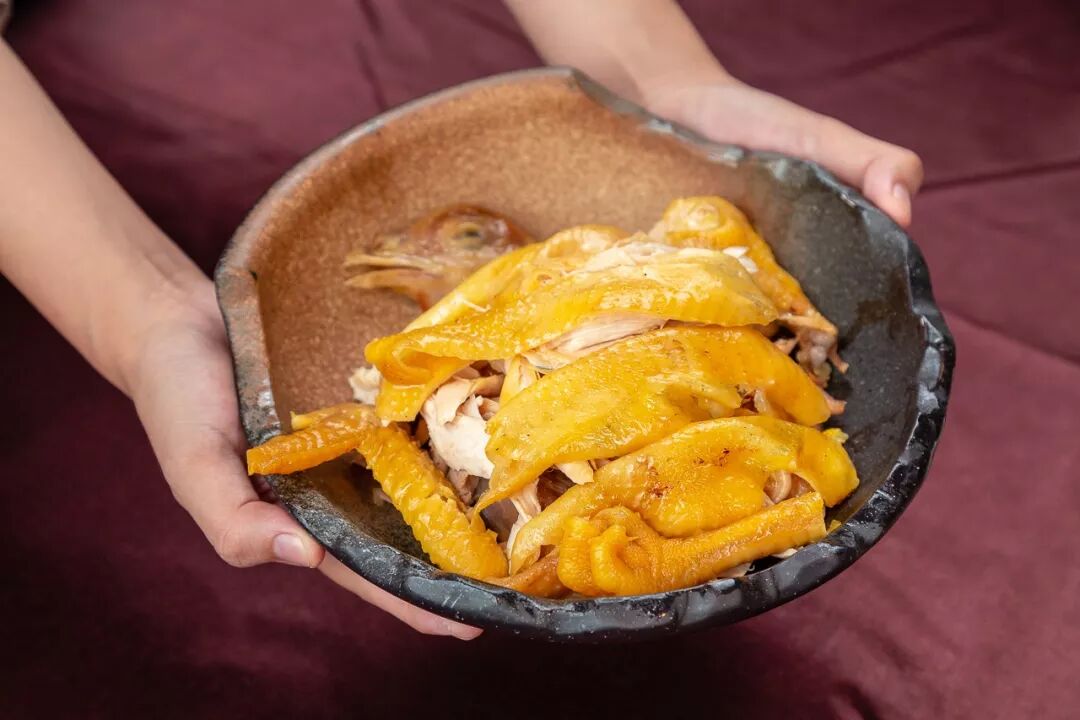 这款手撕盐焗鸡,几乎是每位食客到店必选,用古法的方式制作,轻易就能激起我的客家记忆。