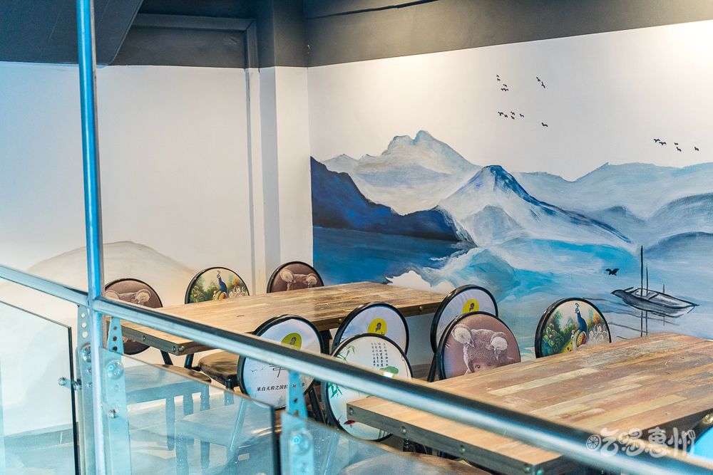 天花板是蓝天白云,墙面是意境深远的墙画,古人的隐逸生活在里都可以得到风雅发酵。