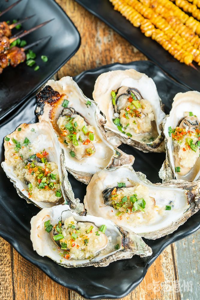 蒜蓉和姜末等佐料放入生蚝内,放到火上烤熟,最大限度地保证了蚝肉的新鲜。蒜蓉香+生蚝的鲜,层次很丰富,一定要来一打系列。