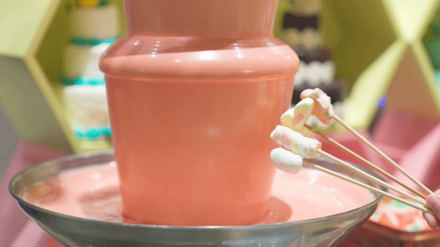 棉花糖、当季水果在这里成了最热门的畅销品,女孩和孩子们对着粉色的巧克力喷泉是毫无抵抗力呀~