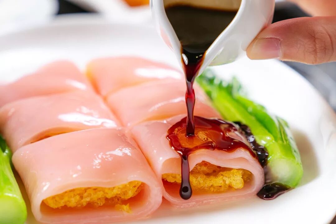 备受宠爱的红米鲜虾肠,淋上秘制酱油,粉嫩的外皮、酥脆的炸面搭配爽口的鲜虾仁,简直唯吾独宠!