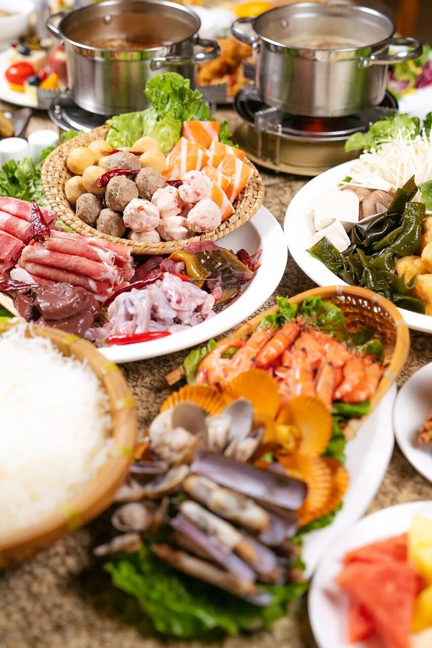 肥牛、肥羊、牛蛙、肉丸、海虾、扇贝、海带…20款调味料,这样自由搭配的DIY火锅才是吃自助餐的乐趣所在。