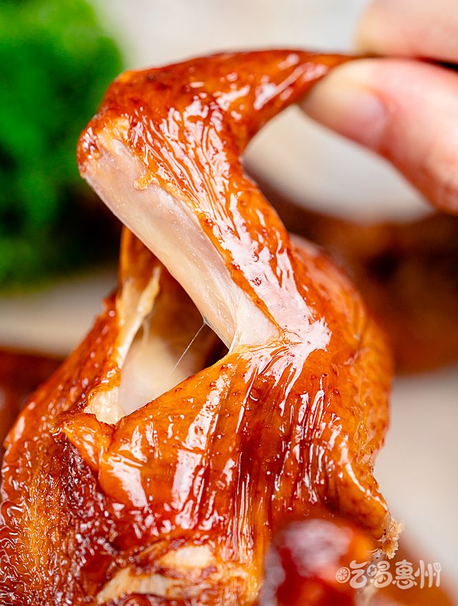 上桌后一定要趁热吃,最佳赏味时间就在10分钟内。轻轻的扯开鸽腿,肉汁也会从爆皮处溢出,你会发现肉质很鲜嫩。