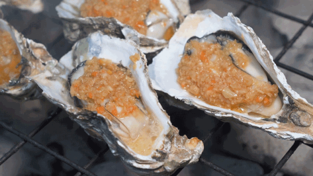 烧烤看好的是火候和手法,烤生蚝最重要的是火候和时间,新鲜到店的生蚝经过清洗后就可以上炉啦,看着饱满的蚝肉随着热气不停地煽动,汁水溢出,让人食欲大增。