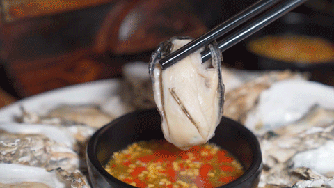 如果吃不惯原汁原味的生蚝,可以放入芥末酱油中,酱油芥末将蚝肉紧紧包裹,还可以去腥,吃起来口感会更好哦~