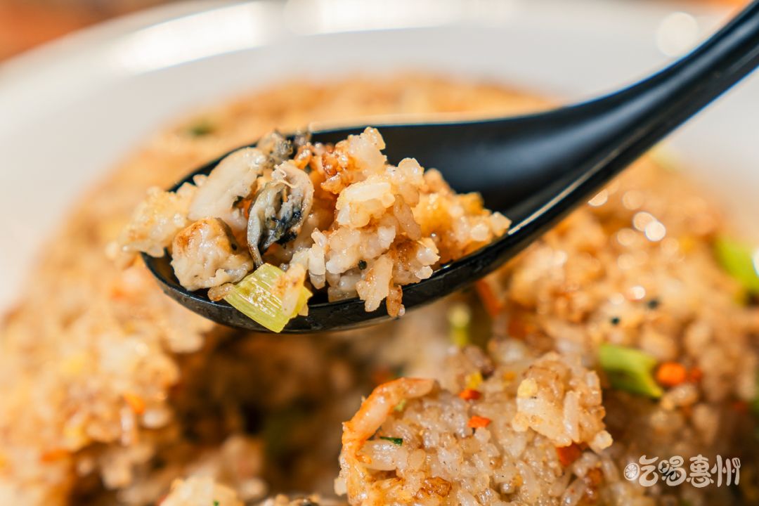 这款新出的生蚝炒饭是老板特地去赤岸村学习,带回来的一款炒鸡棒的炒饭,放入生蚝、虾米等原材料,大火翻炒后米饭湿度降低,变得更香。
