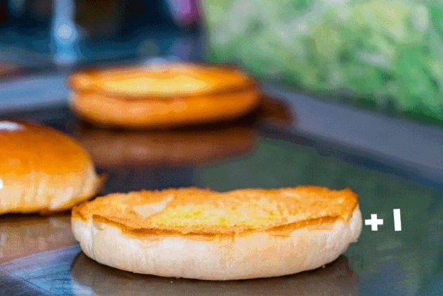 鸡中霸王堡,重点当然是鸡了,将事先腌制好的鸡肉放进炉子里煎烤,熟练的适度将火候控制得恰到好处,不然鸡扒很容易变焦影响口感。