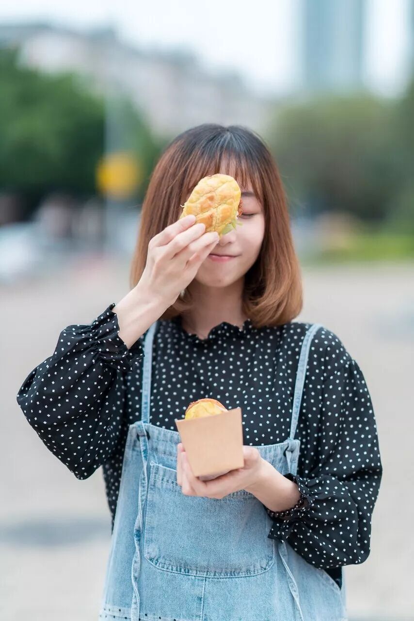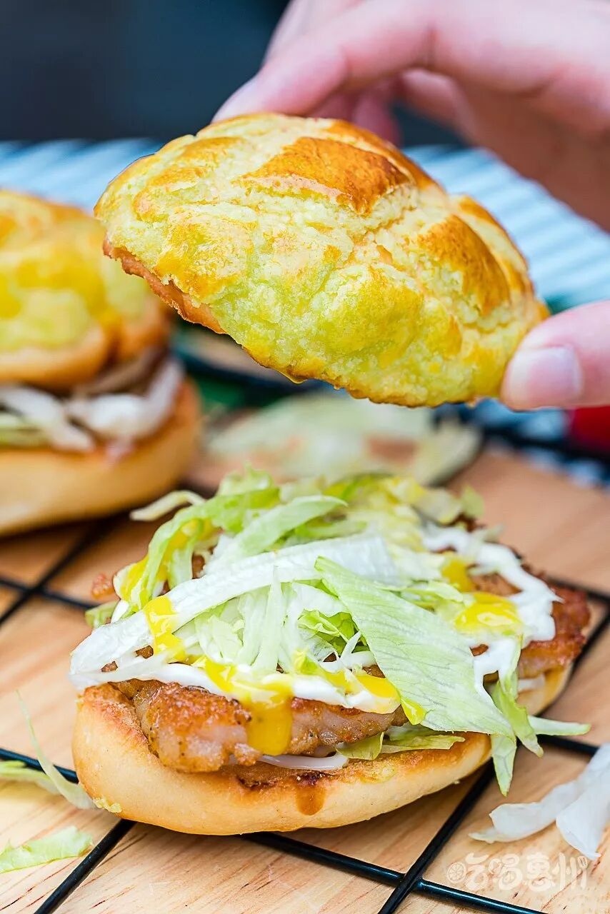女生有女生斯文的吃法,男生当然可以换种豪迈劲来体验,菠萝包换成汉堡的吃法,我很喜欢。