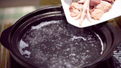 沸腾后马上放入鸡肉,静静等待美好时刻的到来~随着温度的升高,清甜的椰子香味扑鼻而来,不禁食指大动。