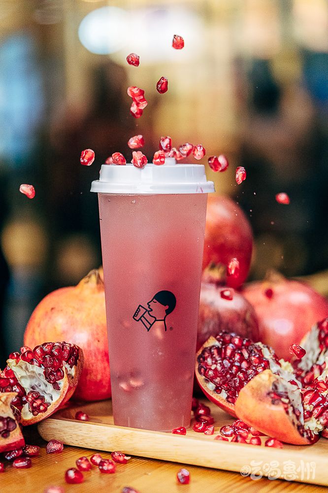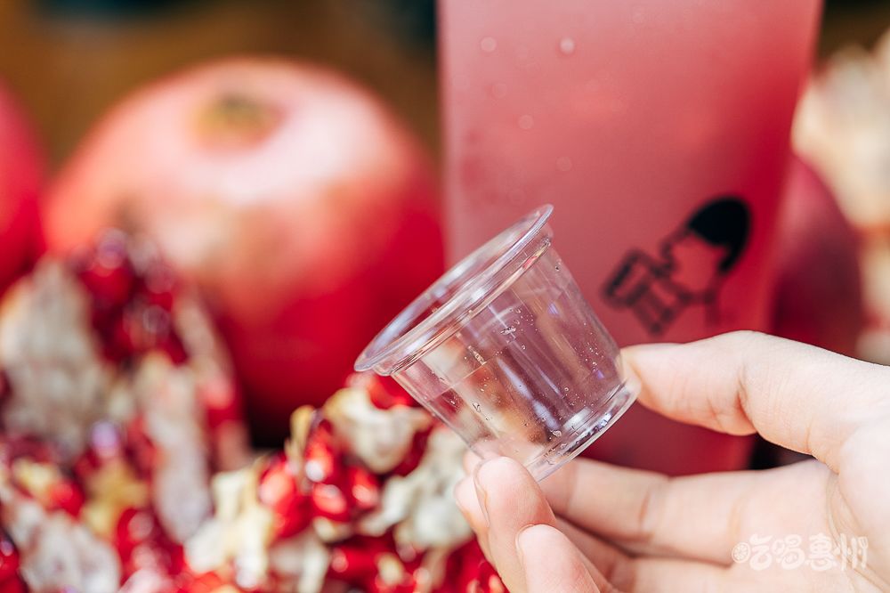 喝的时候,一定要用粗吸管喔。将吸管伸到底部,可以吸到底下Q弹的脆波波和软籽石榴颗粒。两者混合在一起,口感很有趣,你会爱上的。