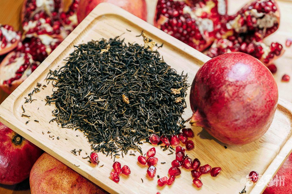 今日cp是云峰茶底,茶汤鲜爽浓醇,跟石榴超match。石榴在茉莉花香的烘托下,愈加清爽甜美。
