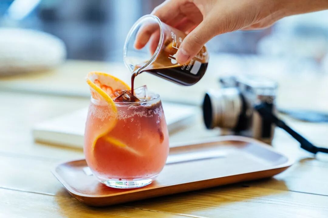 老板推荐我们这杯气泡咖啡,我要了西柚口味,喝起来真的很特别,喝一口是气泡水,但下口后却是咖啡的回甘,建议咖啡可以一点点加入,若加太多就会变酸了。