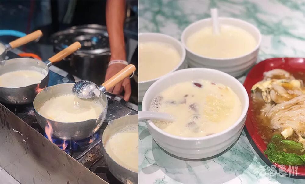 5元一碗纯豆浆,10元任加料,可以加鸡蛋、姜薯、西米、银耳…我一个惠州人第一次吃潮汕豆浆,觉得味道还不错。店里还有很多潮汕小吃,肠粉油条和鸡翅最多人推荐啦。(温馨提示,店里只有一部空调,真的好热,油烟有点大,介意的慎去~)