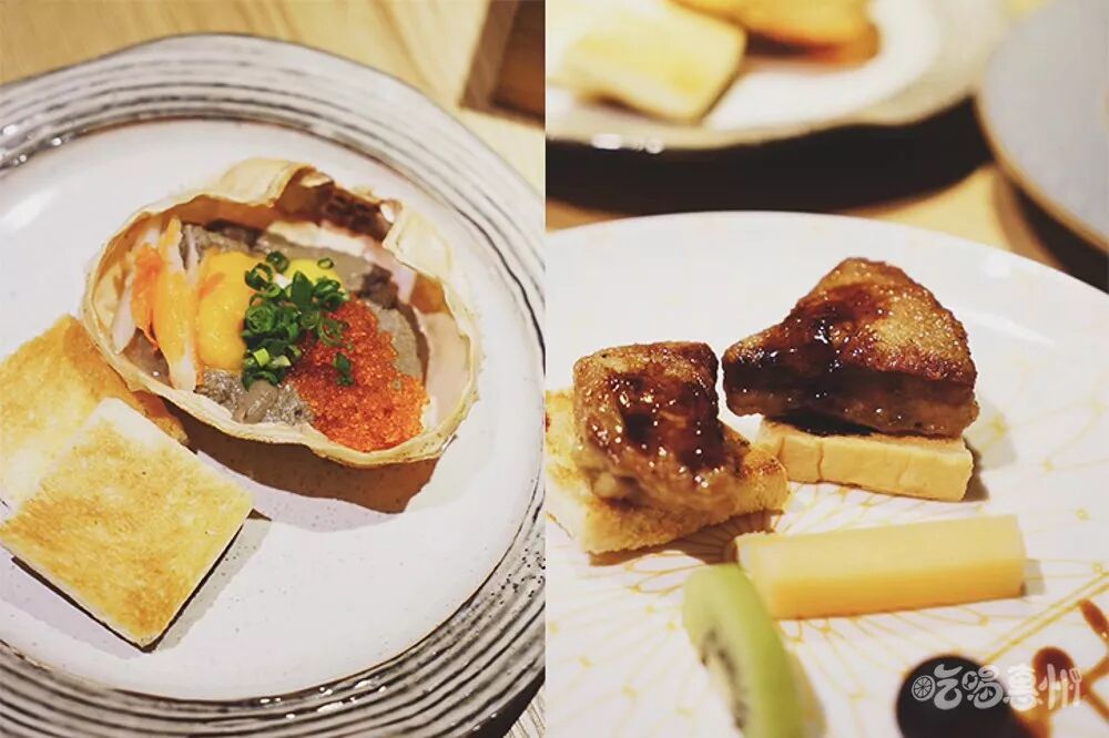 蟹味甲壳烧前很漂亮,烤后会很丑,要配上面包片才不会那么腥。香煎鹅肝也不错,配上水果没那么腻。这里消费会比较高,两个人不小心点了600多元。