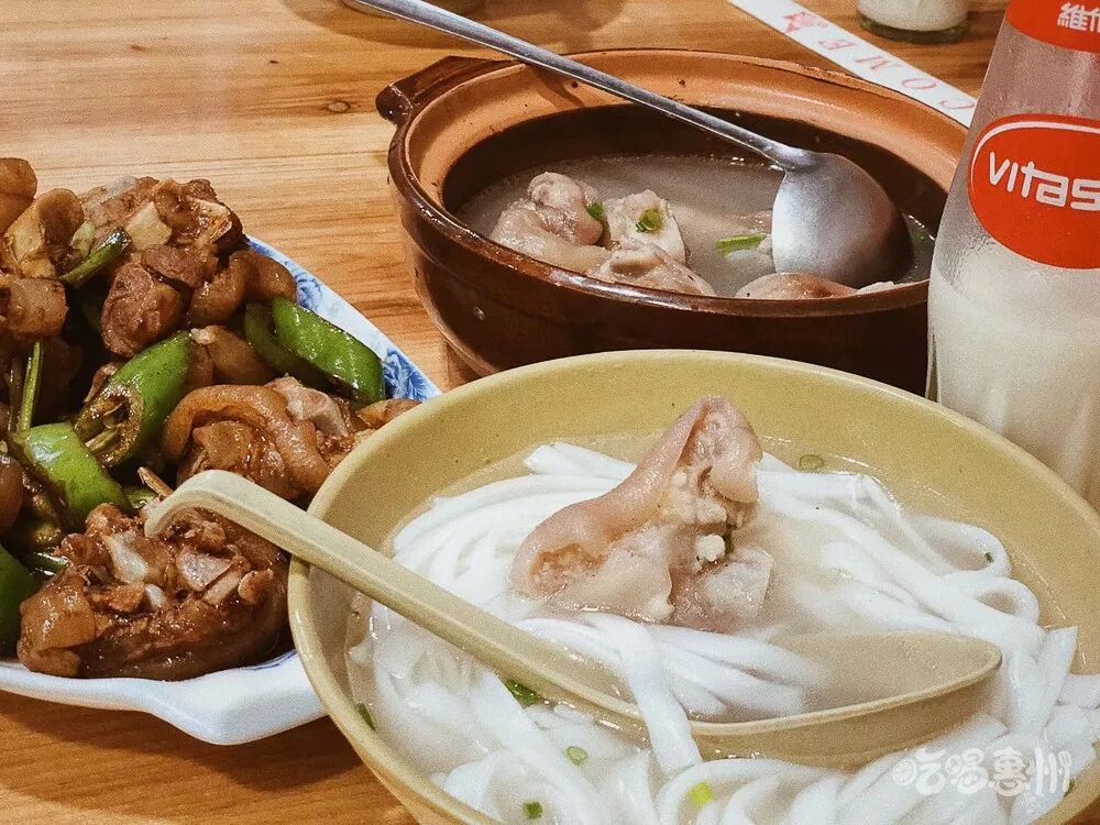 以前我们公司在港惠,我挺常来这家店吃早餐的,其实他们也有做饭市。可以点一份斋粉,再点一煲猪脚。猪脚是白灼的做法,清理得蛮干净的,很重胡椒粉的味道我很喜欢。当然重口味的宝宝可以来份红烧猪脚。(感谢热心网友供图)